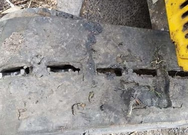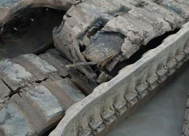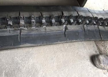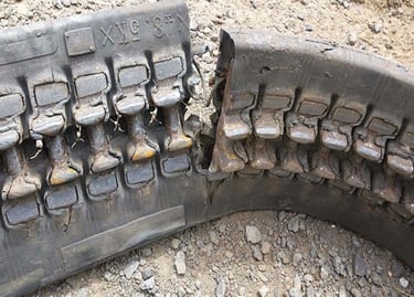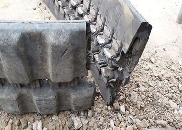 Rubber tracks do not fail all at once. They unravel in chapters. UV exposure and weather slowly dry and crack the compound. Sharp debris slices into weakened edges. Metal components begin to rust and degenerate. Stress builds beyond the track’s maximum load tolerance, and what once gripped with confidence starts to slip, stretch, or separate. When you see chunking, deep cuts, exposed cabling, broken lugs, or delamination between rubber and metal, the track is no longer performing safely or efficiently. Replacement at this stage is not just maintenance, it is protection against downtime, productivity loss, and secondary machine damage.
