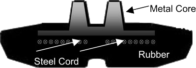 The embedded metal core is forged and heat-treated; this process increases the strength of the metal, which is critical for the reliable operation of the rubber track.